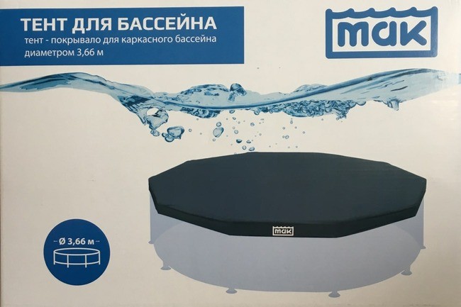Тент предохраняет бассейн от попадания в него листвы, мусора, дождя. Ночью тент предохраняет от излишнего остывания и испарения воды. Размер тента позволяет укрыть бассейн диаметром 366 см, свес краев..