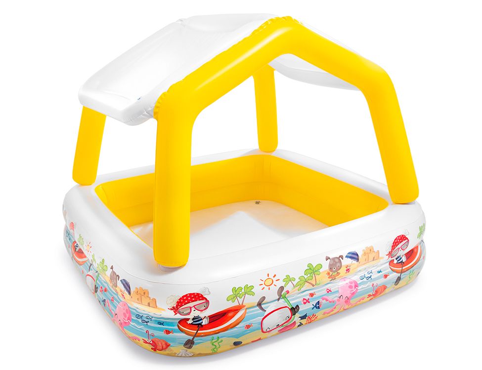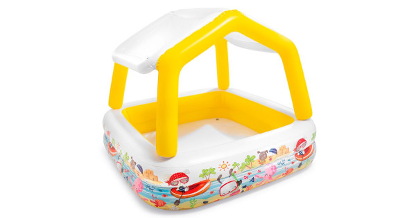 Небольшой надувной бассейн для малышей. Надувной навес от солнца в виде замка с большими окошками. Вы легко сможете присматривать за своим ребенком. Небольшая глубина позволяет купаться в нем даже сам..