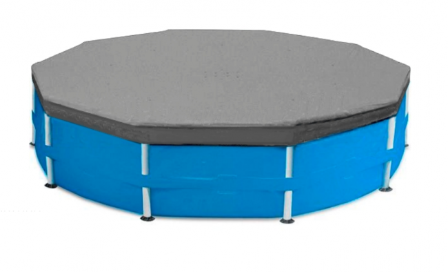 Тент предохраняет бассейн от попадания в него листвы, мусора, дождя. Ночью тент предохраняет от излишнего остывания и испарения воды. Размер тента позволяет укрыть бассейн диаметром 366 см, свес краев..