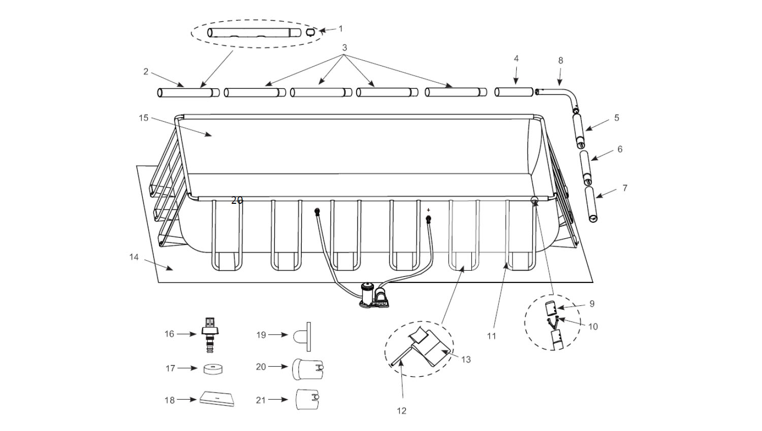 Горизонтальная балка Intex 12221 (С) для прямоугольных каркасных бассейнов