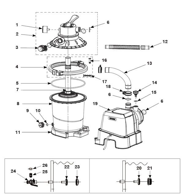 Воздухозаборник аэратора Intex 12368 предназначен для бассейна под хомуты 32мм и насоса 28638 (638R)...