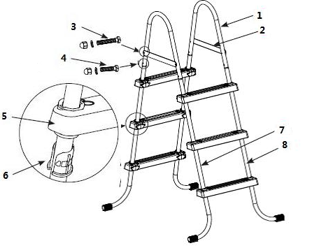 Верхняя скоба Intex 12509 подходит лестниц 28064 (91 см), 28065 (107 см), 28066 (122 см).